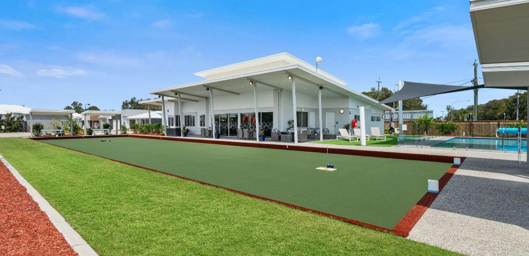 Pictured: Residents at the Orianna community in Moreton Bay, QLD, enjoying catching up for a friendly game of lawn bowls.