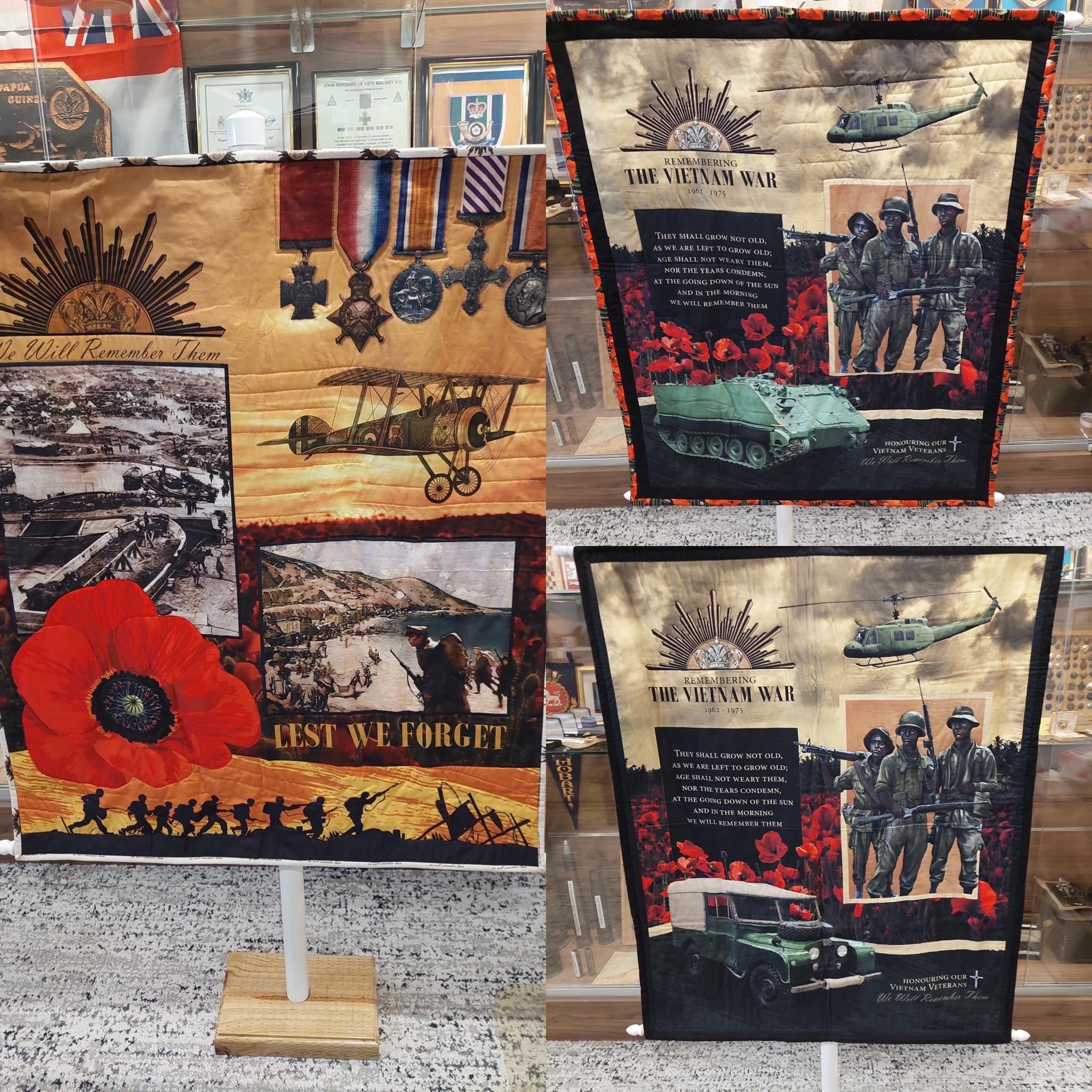 The ladies have recently completed 11 quilts and 6 banners with storage bags to present to the RSL to commemorate the service days. The quilts were taken to the RSL NSW headquarters where one was presented to the Hon. David Elliott, Minister of Veterans and Transport and another was given to the NSW RSL President Mr Ray James.