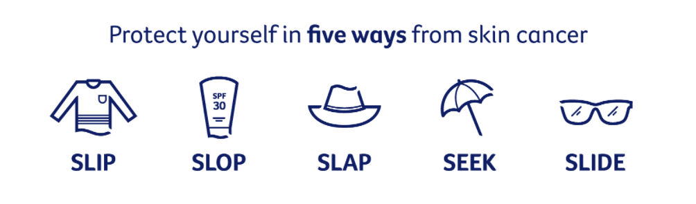 Pictured: Don’t forget to Slip, Slop, Slap, Seek, Slide to help prevent skin cancer